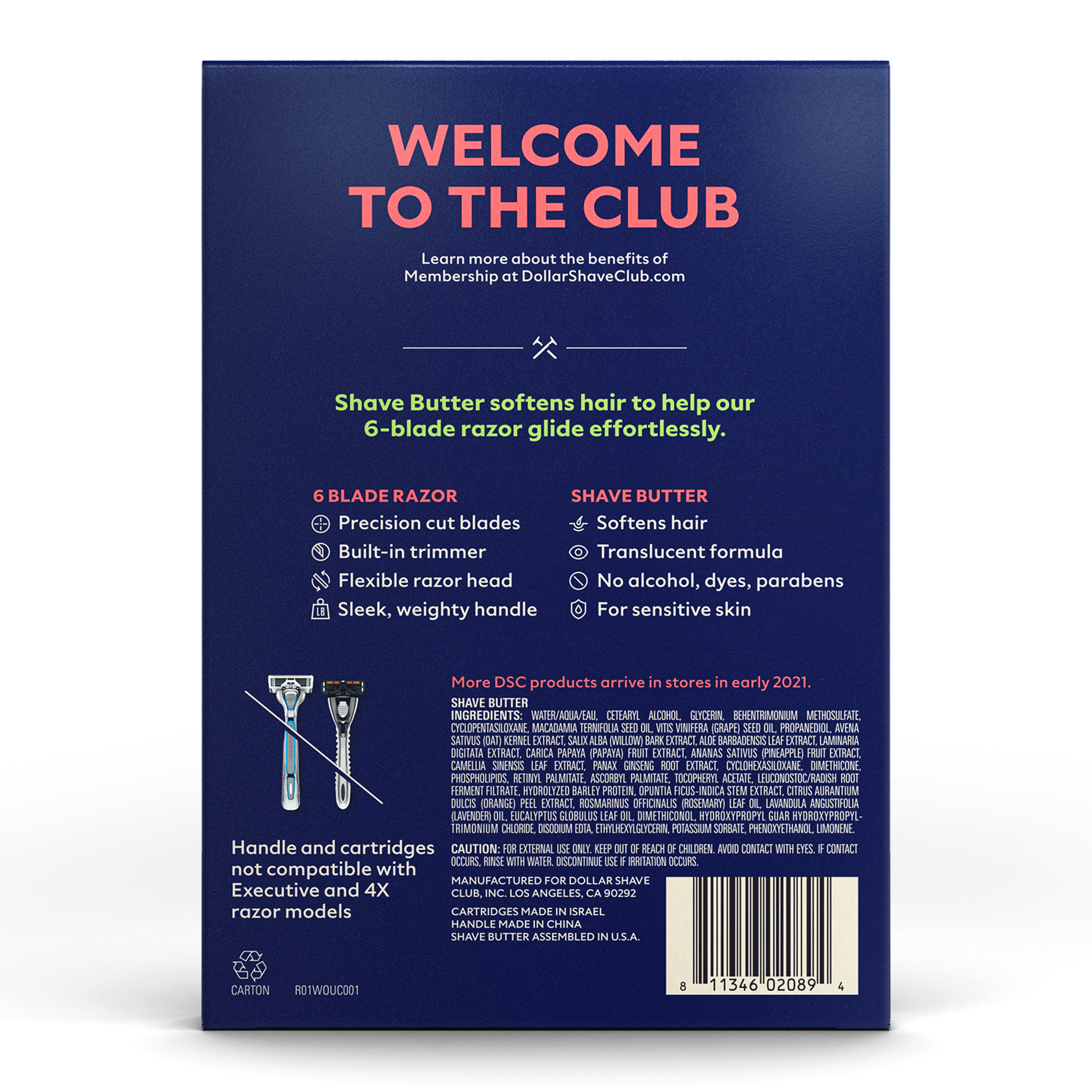 Dollar Shave Club 6 Blade Razor Bundle Blue With Shave Butter 1 Handle 4 Cartridges 3 Oz Walmart Com